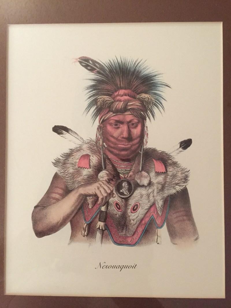 My Rendition of McKenney and Hall’s Nesouaquoit. Acrylic on gesso board, approx. 16×12. UV protectant applied. Note cards and envelopes available too. This is installed in one of my trumeaus! Will post that later.