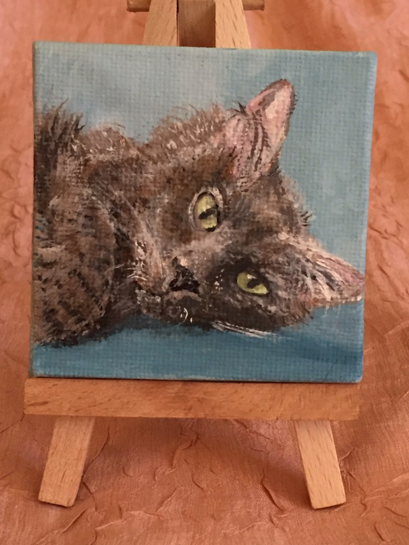 Pet portrait miniature includes easel. Acrylic on canvas with UV protectant. Stutz Bearcat, Las Vegas, NV. Rendering created by Kimberly B. Gray, Santa Fe, 2017.