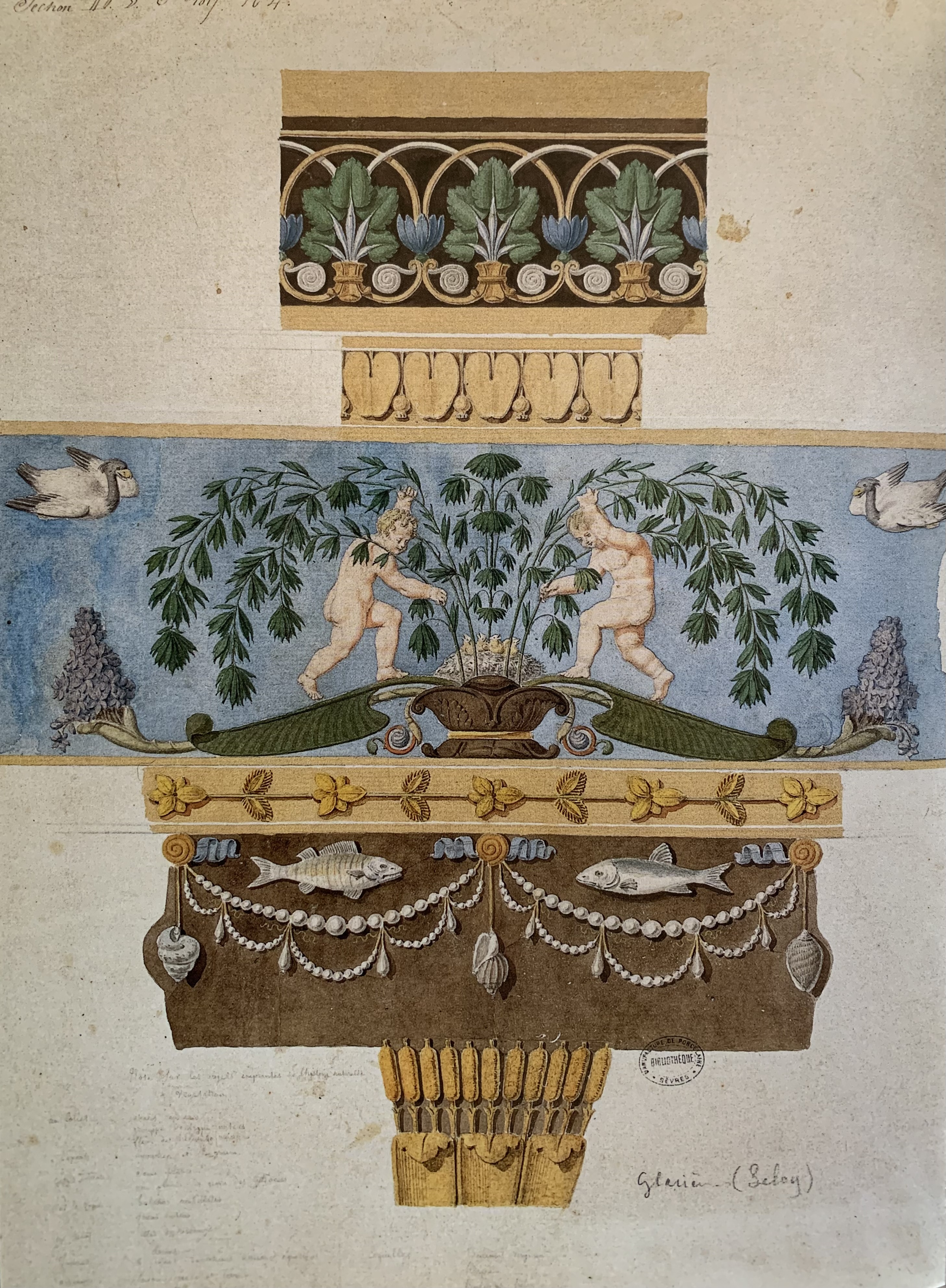 Pearls were once a synchronicity of mine when I lived in Ohio. I thought of the demilune table I started painting many years ago using an image from a French decorative arts book of the 17th-19th centuries. I never finished painting it. The demilune languishes unfinished in storage.